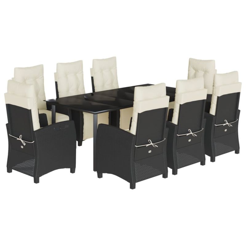 Градински трапезен комплект възглавници 9 части черен полиратан