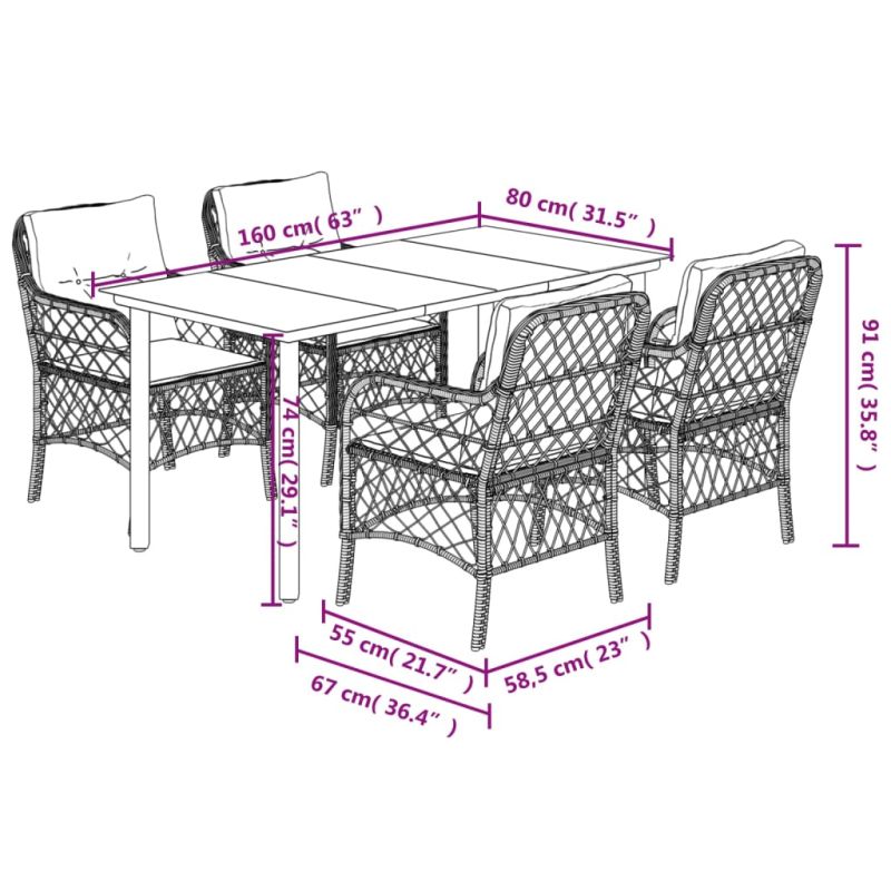 Градински трапезен комплект възглавници 5 части черен полиратан