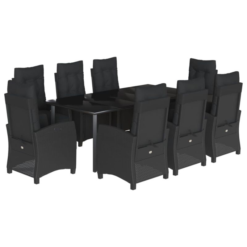 Градински трапезен комплект възглавници 9 части черен полиратан
