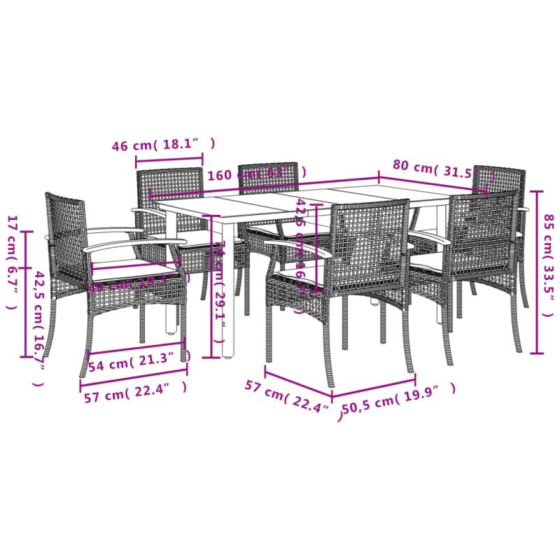 Градински трапезен комплект 7 части с възглавници сив полиратан