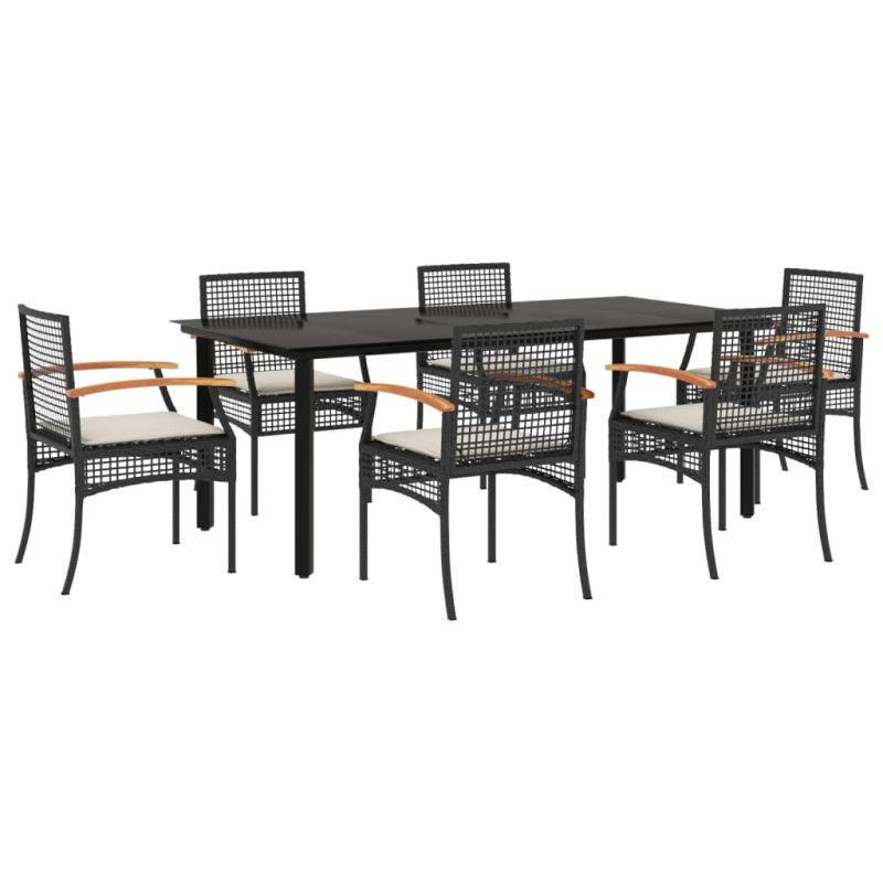 Градински трапезен комплект 7 части възглавници черен полиратан