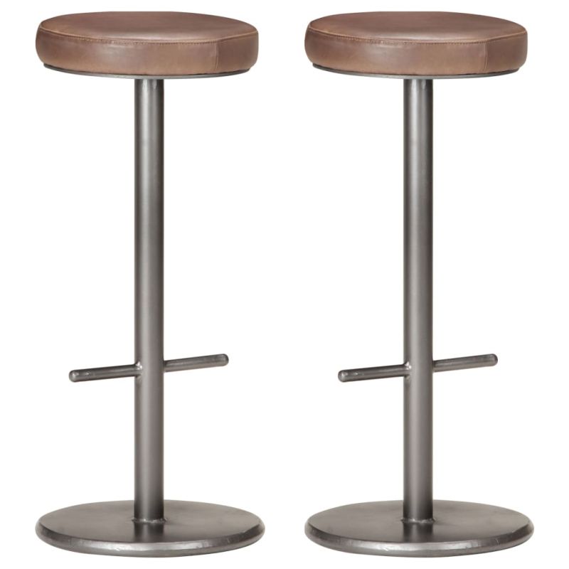 Бар табуретки, 2 бр, състарено кафяво, естествена кожа