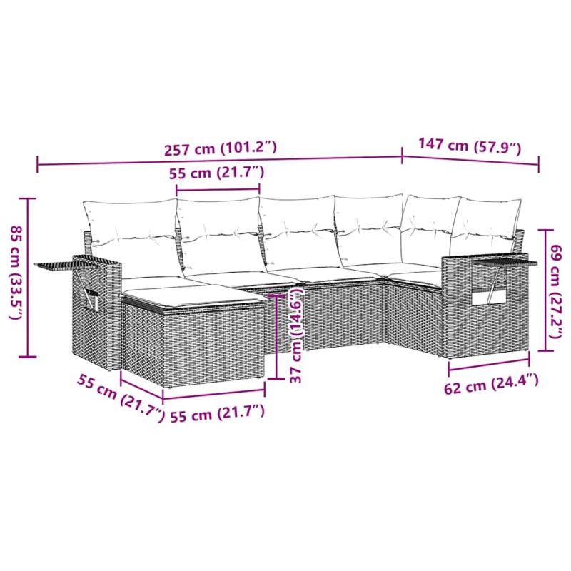 Този градински диван е идеалното допълнение към вашия заден двор, тераса или вътрешен двор, осигурявайки удобно и привлекателно пространство за разговори със семейството и приятелите или просто за почивка и забавление на открито. Издръжлив материал: PE ратан, известен също като полиратан, е здрав синтетичен материал с малко необходима поддръжка, който прилича на естествен ратан. Той е лек, лесен за почистване и често се използва за външни мебели поради своята издръжливост и устойчивост на атмосферни влияния.Функция за съхранение с водоустойчива чанта: Всяка градинска седалка разполага с място за съхранение под седалката, допълнено с водоустойчива чанта за съхранение на възглавници, играчки и други предмети. Вътрешните чанти имат горен капак и могат да бъдат здраво закрепени към седалките със закопчалки за допълнителна стабилност.Стъклен плот: Плотът на външната маса е изработен от здраво и издръжливо закалено стъкло, което улеснява почистването с влажна кърпа и добавя нотка елегантност към вашето външно пространство.Калъф, който може да се сваля и може да се пере: Тези възглавници за седалки имат подвижни калъфи за лесно пране и поддръжка.Модулен дизайн: Този комплект външни мебели има модулен дизайн, което го прави напълно гъвкав и лесен за преместване, така че можете да създадете персонализирана подредба на външни мебели. Добре е да се знае:За да сте сигурни, че вашите външни мебели ще останат красиви, ви препоръчваме да ги защитите с водоустойчиво покривало.