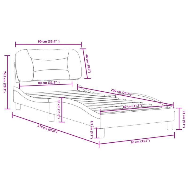 Осигурете си по-добър спокоен нощен сън с тази рамка за легло с табла за глава! Тя представлява приветливо допълнение към всяка спалня. Издържлива изкуствена кожа: Първокласната изкуствена кожа е изключително издръжлив материал. Устойчива е на петна, което я прави лесна за почистване с влажна кърпа. Гладката повърхност също така придава луксозен вид и красотата на истинската кожа.Ламели от шперплат: Ламелите от шперплат осигуряват добро разпределение на теглото, като гарантират, че матракът остава на място при всяко завъртане на тялото ви по време на сън.Отлична опора: Възглавницата за табла е с пълнеж от PP влакна за изключително мек и оптимален комфорт, осигурявайки ви отлична опора за гърба, докато седите в леглото, за да четете или гледате телевизия.Вълнообразен страничен дизайн: Вълнообразният дизайн на рамката на леглото е стилен и изискан, добавя модерен и елегантен щрих към вашия декор, превръщайки го във фокусна точка на вашата спалня. Добре е да се знае:Към това легло не е включен матрак. Ние предлагаме разнообразна селекция от матраци. Можете да проверите нашия магазин за подходящ матрак.