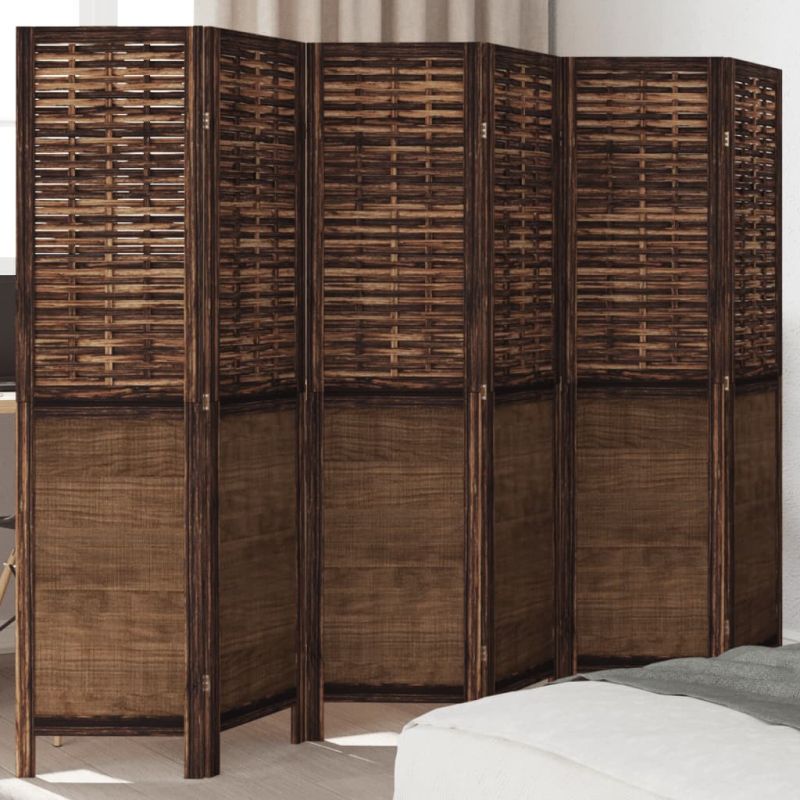 Разделител за стая, 6 панела, тъмнокафяв, дърво пауловния масив