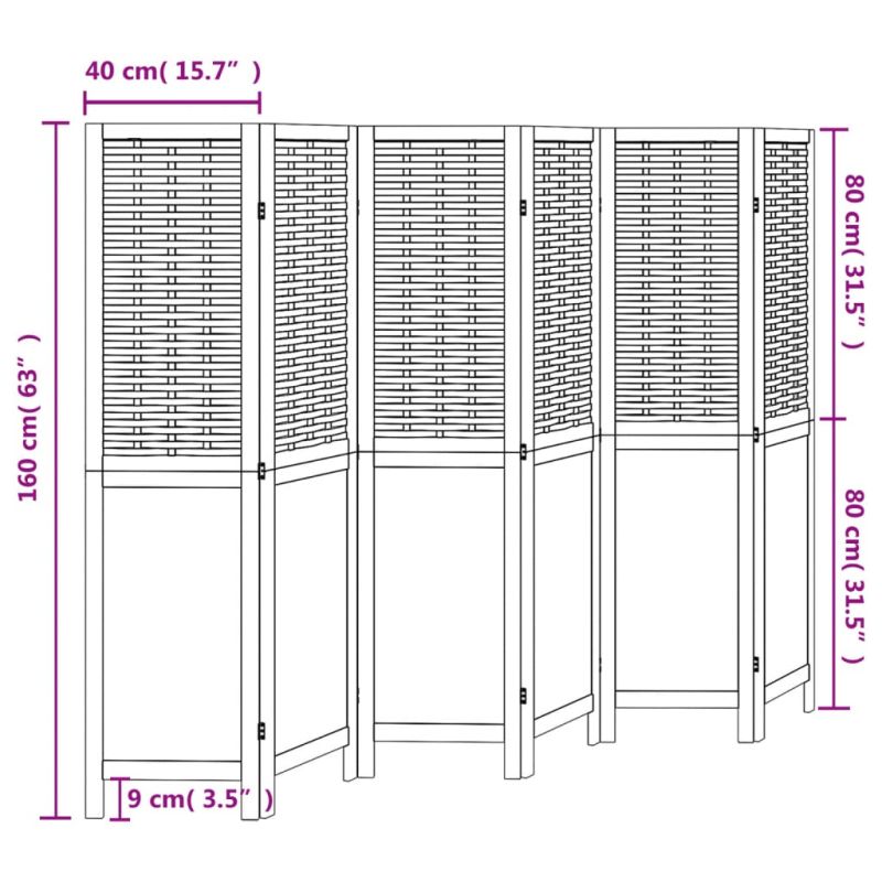 Внесете елегантност и привлекателен декоративен щрих във вашето пространство с тази очарователна преграда за стая. Издръжлив и лесен за почистване: Параванът за поверителност е изтъкан от естествени бамбукови ленти и инженерно дърво, което го прави лесен за почистване и издръжлив.Стабилна рамка: Рамката от масивно дърво пауловния гарантира здравина и стабилност. Масивното дърво от пауловния е красив естествен материал. Дървесината от пауловния е силно устойчива на насекоми и гниене.Гъвкав и лесен за сгъване: Всяка преграда е свързана с 3 метални панти, а горният и долният панел са свързани чрез скрити панти 2 в 1. Така панелът за разделяне на стая може лесно да се сгъне до известна степен според вашите нужди, за да спестите място.Многофункционален: Преградата за стая е чудесна за създаване на лично пространство във вашата спалня, всекидневна, офис и други интериори. Можете също да го поставите пред прозорец, за да блокира интензивната слънчева светлина.Обгорен вид: Този сгъваем разделител на стаи с обгорен вид придава характер и декорира пространството. Внимание:Само за вътрешна употреба.