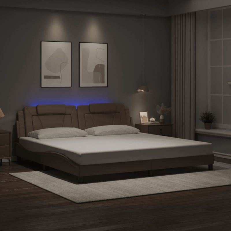 Рамка за легло Viana с LED без матрак, капучино, 200x200 см
