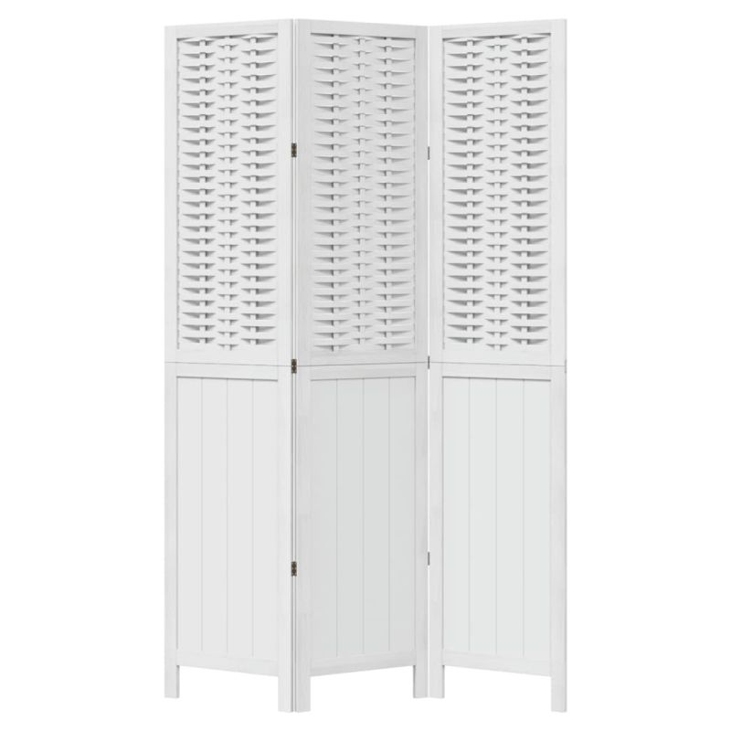 Разделител за стая, 3 панела, бял, дърво пауловния масив