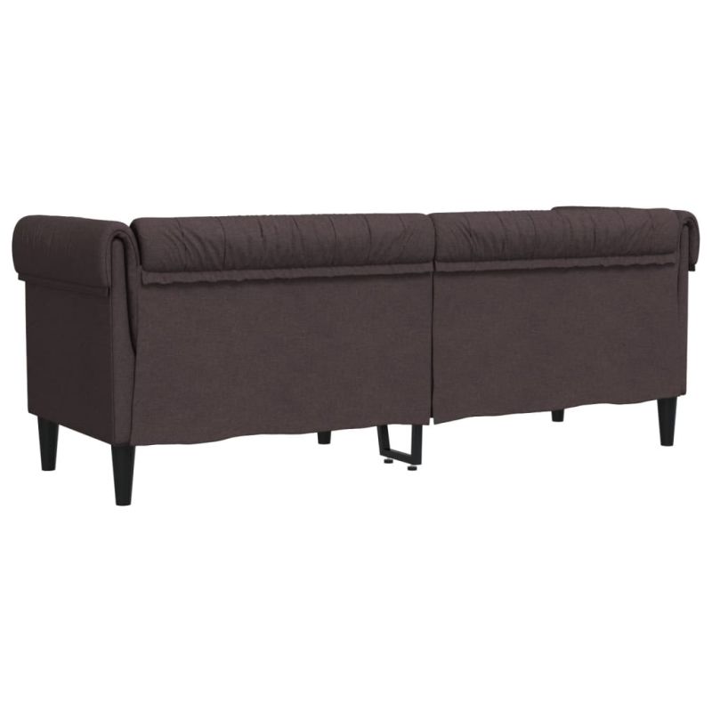 Честърфийлд диван, 3-местен, тъмнокафяв, текстил