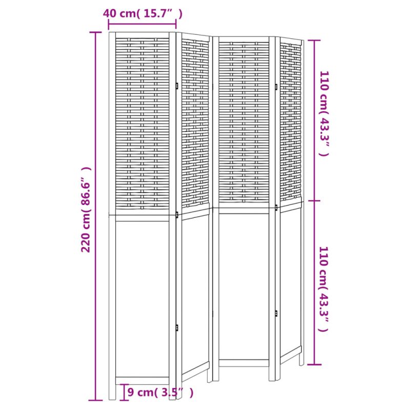 Внесете елегантност и привлекателен декоративен щрих във вашето пространство с тази очарователна преграда за стая. Издръжлив и лесен за почистване: Параванът за поверителност е изтъкан от естествени бамбукови ленти и инженерно дърво, което го прави лесен за почистване и издръжлив.Стабилна рамка: Рамката от масивно дърво пауловния гарантира здравина и стабилност. Масивното дърво от пауловния е красив естествен материал. Дървесината от пауловния е силно устойчива на насекоми и гниене.Гъвкав и лесен за сгъване: Всяка преграда е свързана с 3 метални панти, а горният и долният панел са свързани чрез скрити панти 2 в 1. Така панелът за разделяне на стая може лесно да се сгъне до известна степен според вашите нужди, за да спестите място.Многофункционален: Преградата за стая е чудесна за създаване на лично пространство във вашата спалня, всекидневна, офис и други интериори. Можете също да го поставите пред прозорец, за да блокира интензивната слънчева светлина. Внимание:Само за вътрешна употреба.