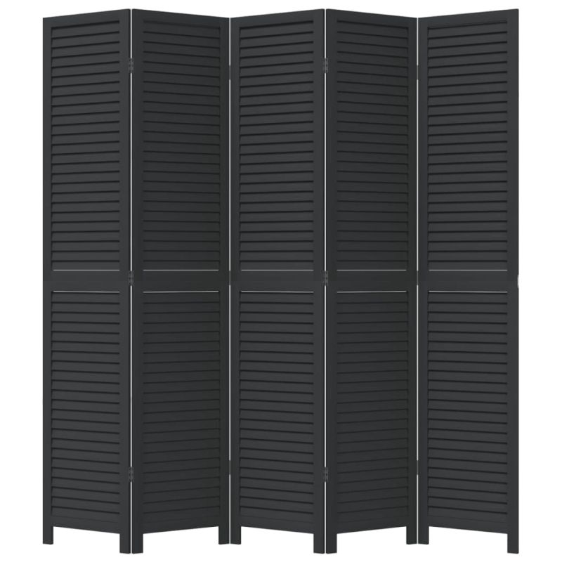 Разделител за стая, 5 панела, черен, дърво пауловния масив