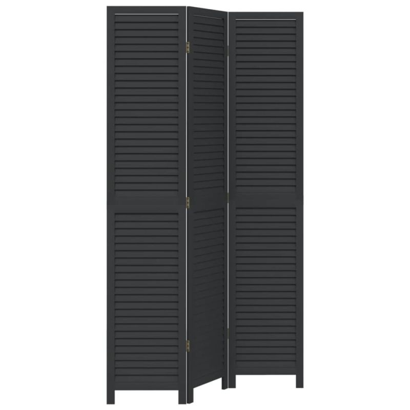 Разделител за стая, 3 панела, черен, дърво пауловния масив