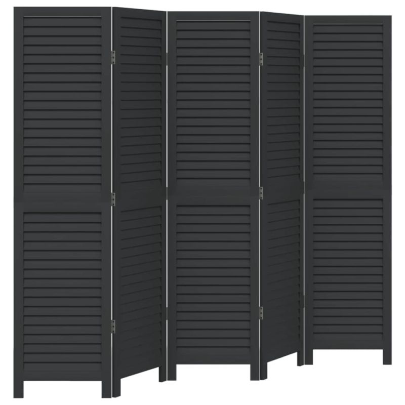 Разделител за стая, 5 панела, черен, дърво пауловния масив