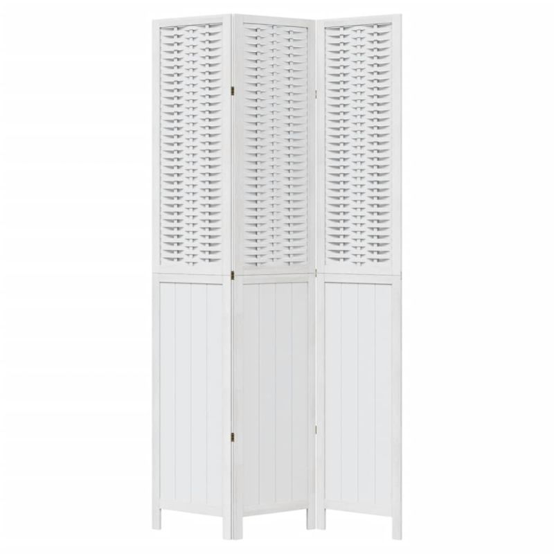 Разделител за стая, 3 панела, бял, дърво пауловния масив