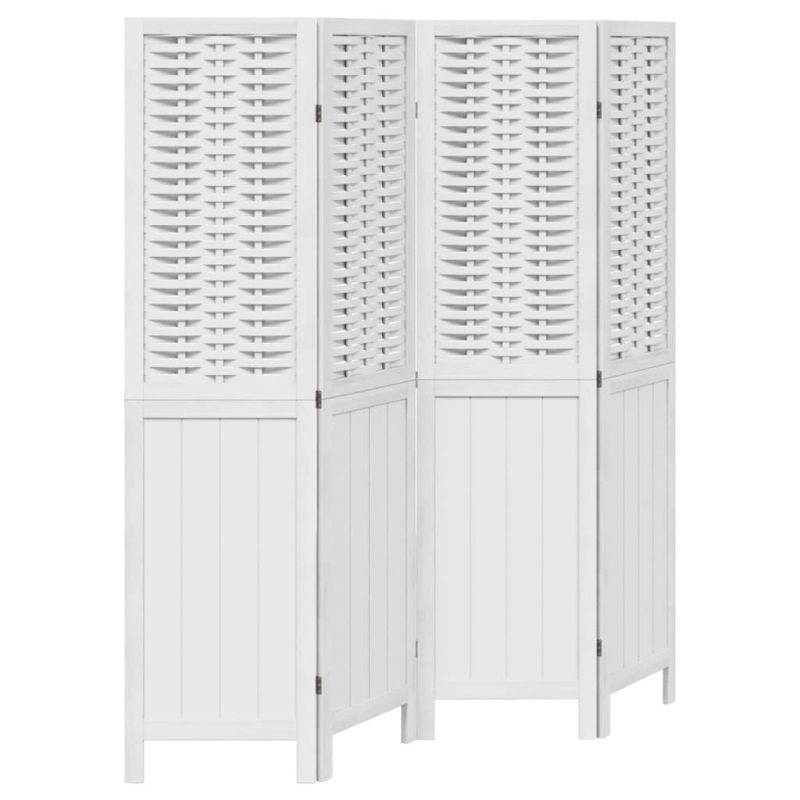 Разделител за стая, 4 панела, бял, дърво пауловния масив