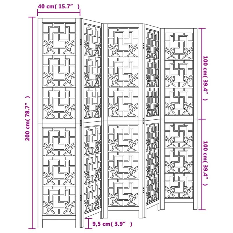 Разделител за стая, 5 панела, кафяв, дърво пауловния масив