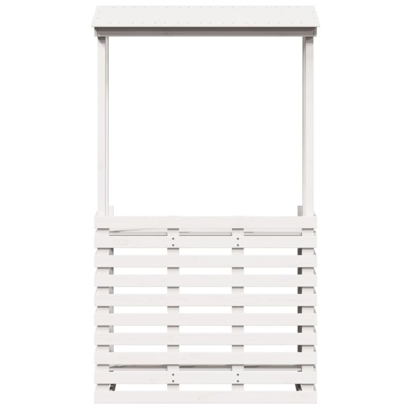 Външна бар маса с покрив бяла, 112,5x57x195,5 см масивно дърво