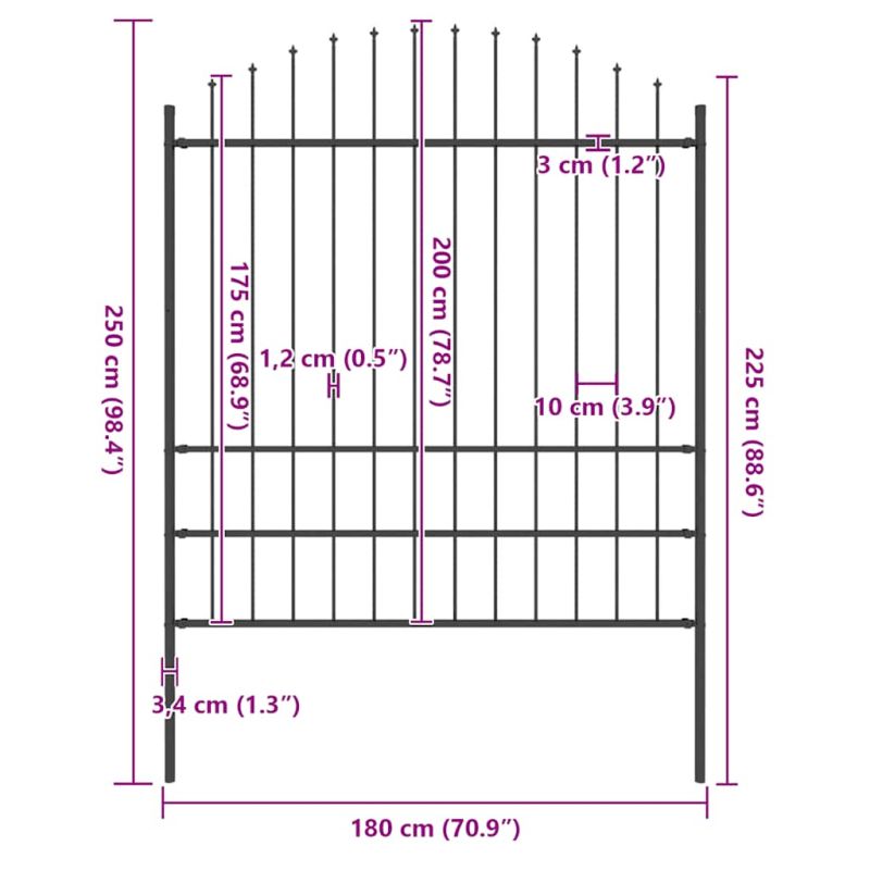 Градинска ограда с връх тип копие, стомана, 181x200 см, черна
