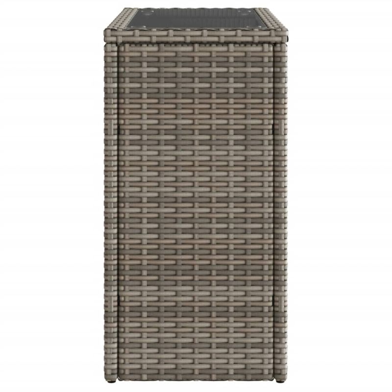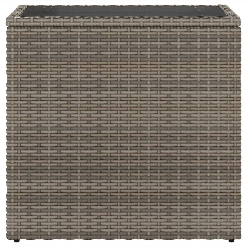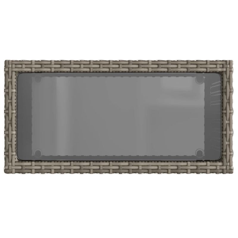 Градинска маса със стъклен плот сива 58x27,5x55 см полиратан