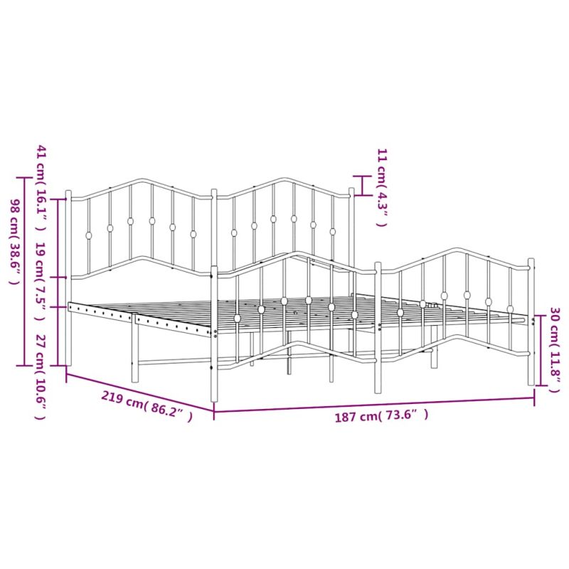 Метална рамка за легло с горна и долна табла, бяла, 183x213 см
