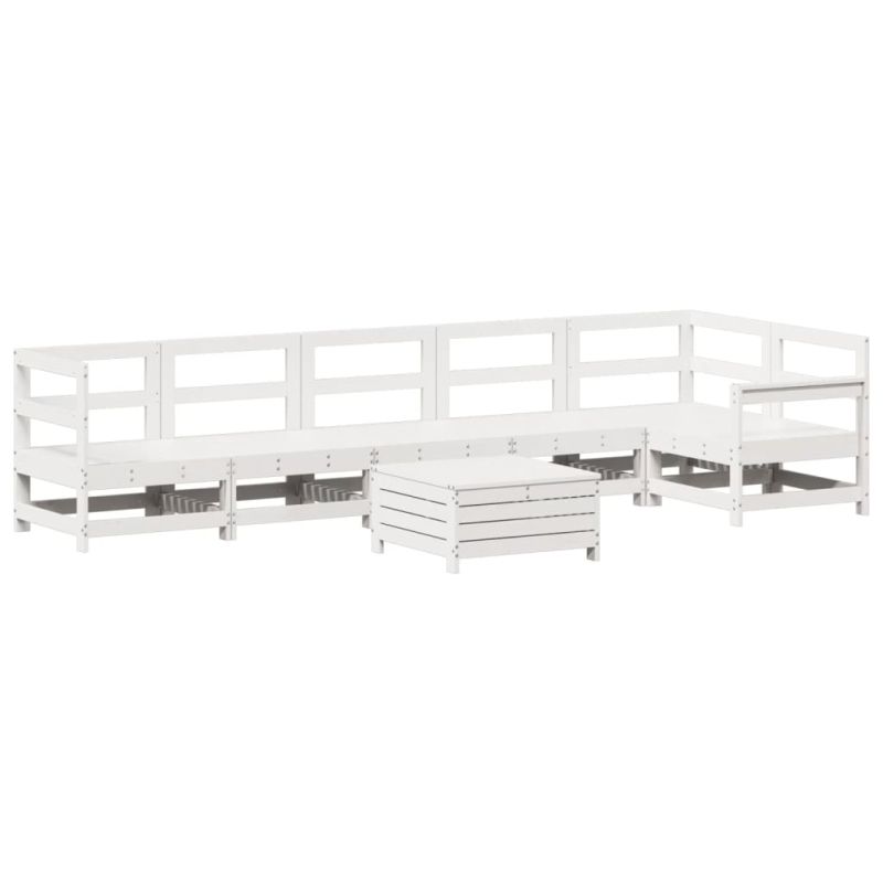 Градински комплект диван от 7 части, бял, масивно дърво бор