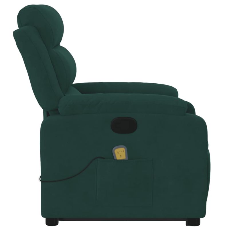 Изправящ масажен реклайнер стол, тъмнозелена, кадифе
