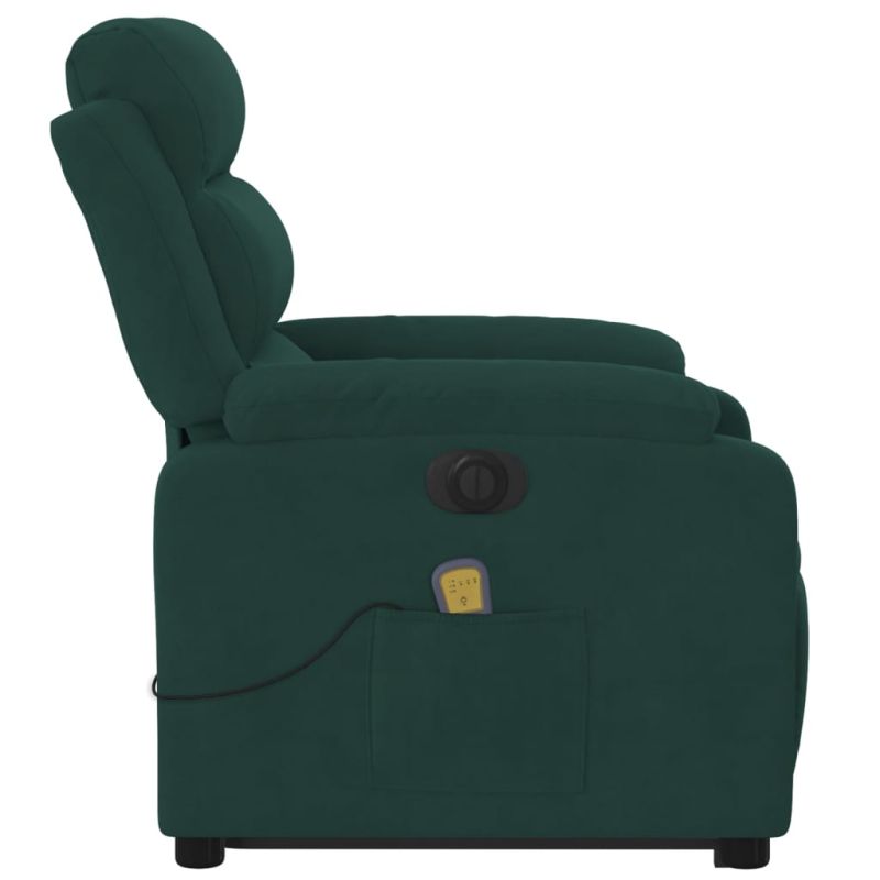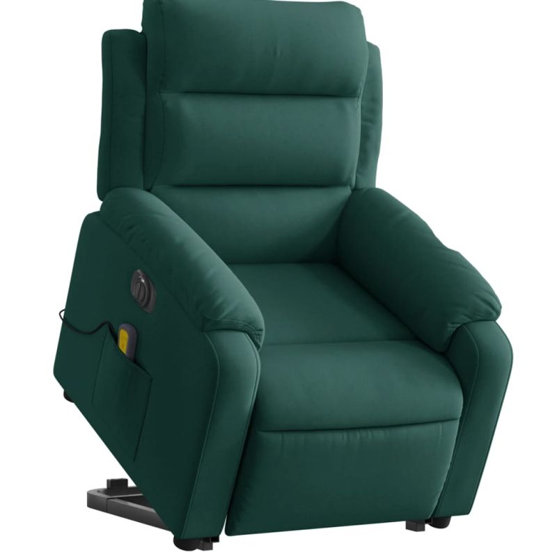 Електрически изправящ масажен реклайнер стол тъмнозелен кадифе