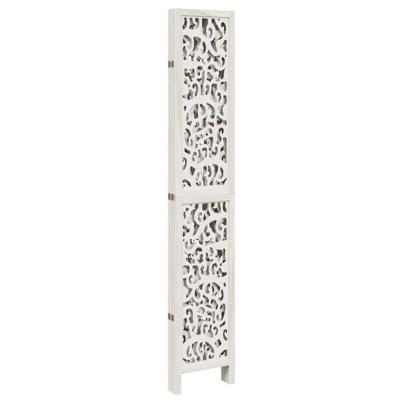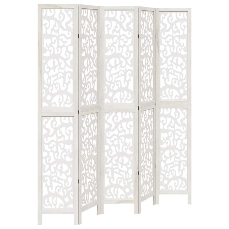 Разделител за стая, 5 панела, бял, дърво пауловния масив