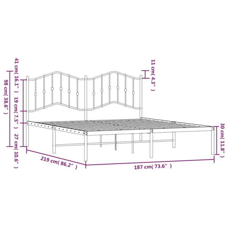 Метална рамка за легло с горна табла, черна, 183x213 см