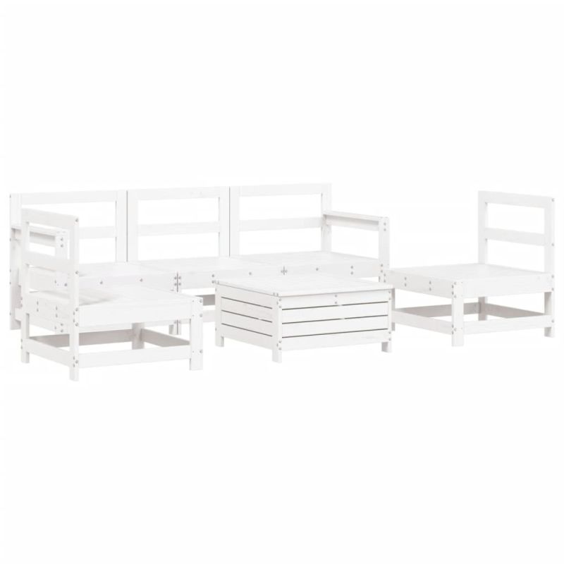 Градински комплект диван от 6 части, бял, масивно дърво бор