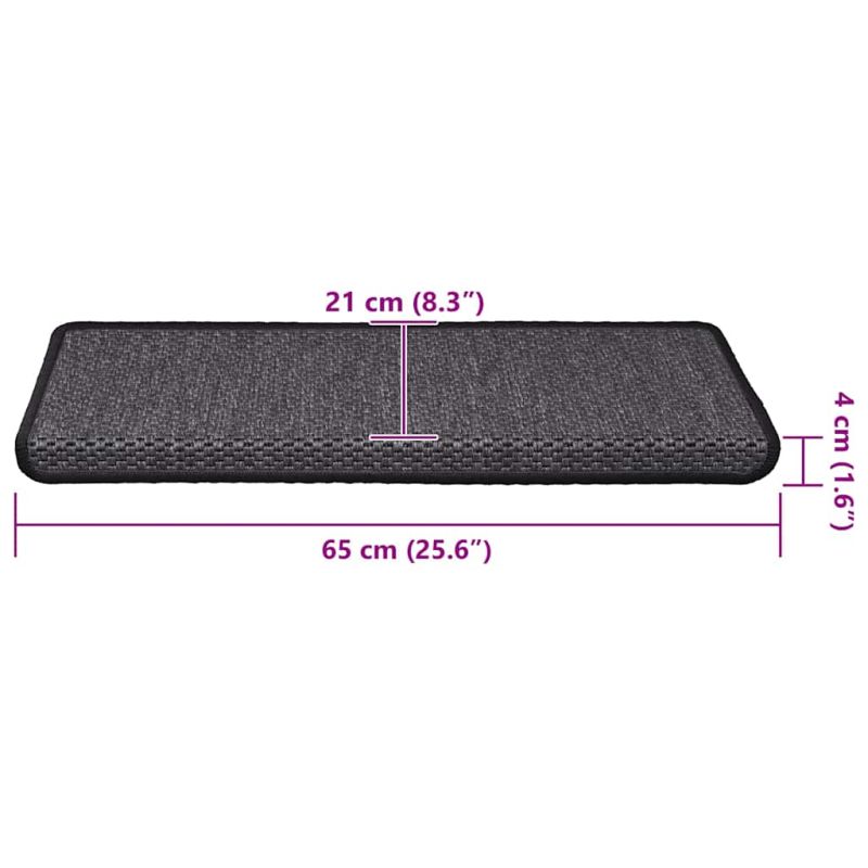 Самозалепващи стелки за стълби сизал 15 бр 65x21x4 см антрацит