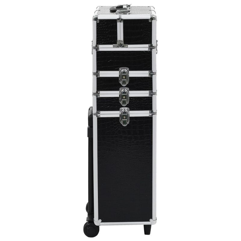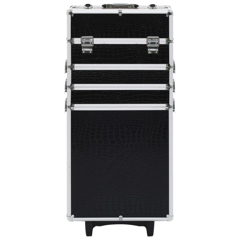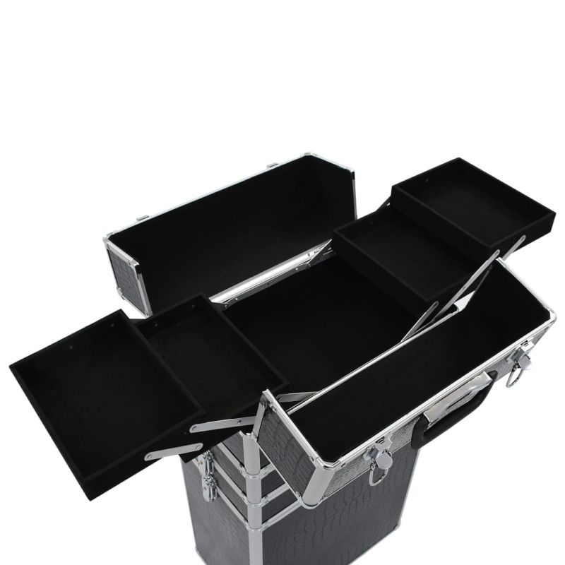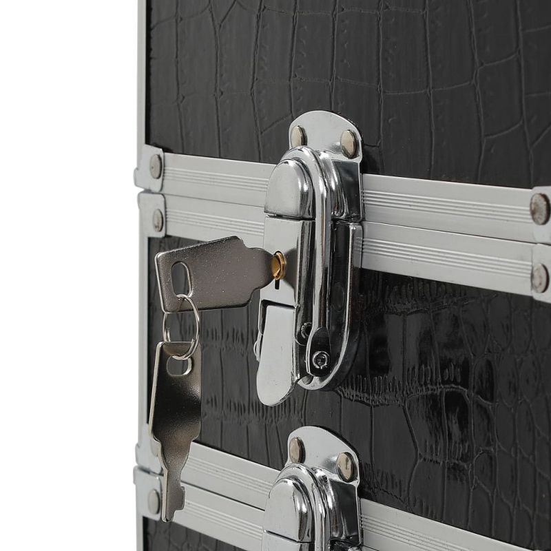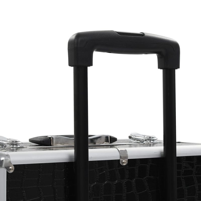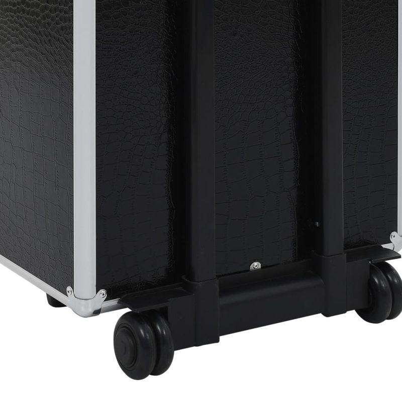 Куфар за грим на колелца, алуминий, черен с крокодилски мотив