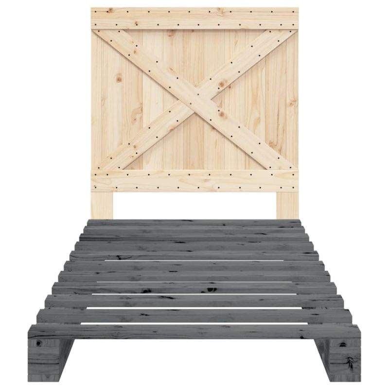 Рамка за легло с табла, сива, 90x200 см, борово дърво масив