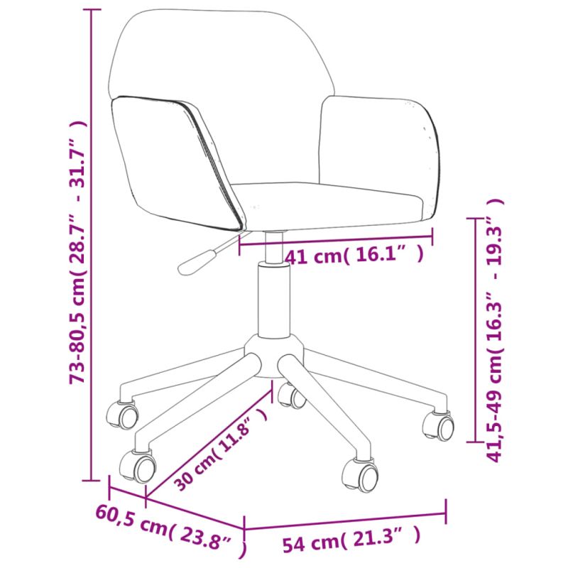 Този модерен въртящ се офис стол е перфектна комбинация от елегантност и комфорт, отличаващ се с минималистичен дизайн. Той се превръща в истински акцент в работното ви пространство. Висококачествен материал: Тъканта се отличава с прост и изчистен вид, дишаща и издръжлива.Стабилна рамка: Металните рамки осигуряват здравина и стабилност.Регулируема височина: Този стол за бюро разполага с газов повдигащ механизъм - можете да използвате лоста, за да регулирате височината на седалката си според вашите предпочитания и комфорт.Лесно местене: Въртящият се стол се мести лесно с оборудваните колела.Отлична гъвкавост: Въртящият се на 360 градуса дизайн позволява по-широк обхват на движение. Максимално 110 кг на седалка. Съобразете се с риска от открит огън и други източници на силна топлина в близост до продукта.