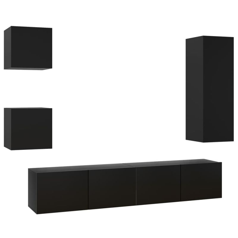 Комплект ТВ шкафове от 5 части, черен, инженерно дърво