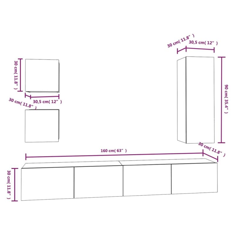 Комплект ТВ шкафове от 5 части, черен, инженерно дърво