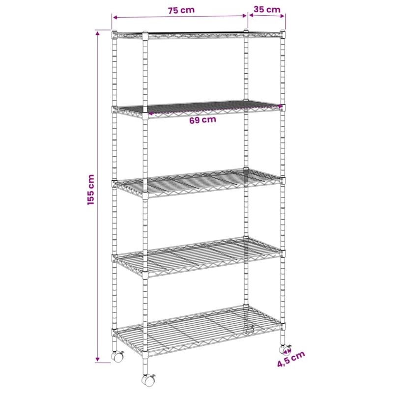 5-етажен стелаж за съхранение с колела 75x35x155 см черен 250кг