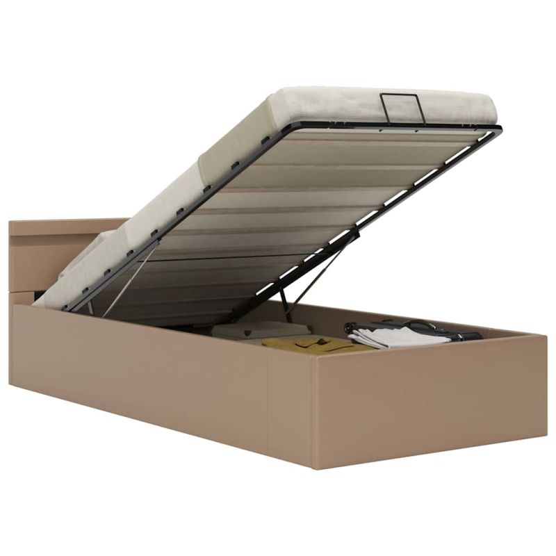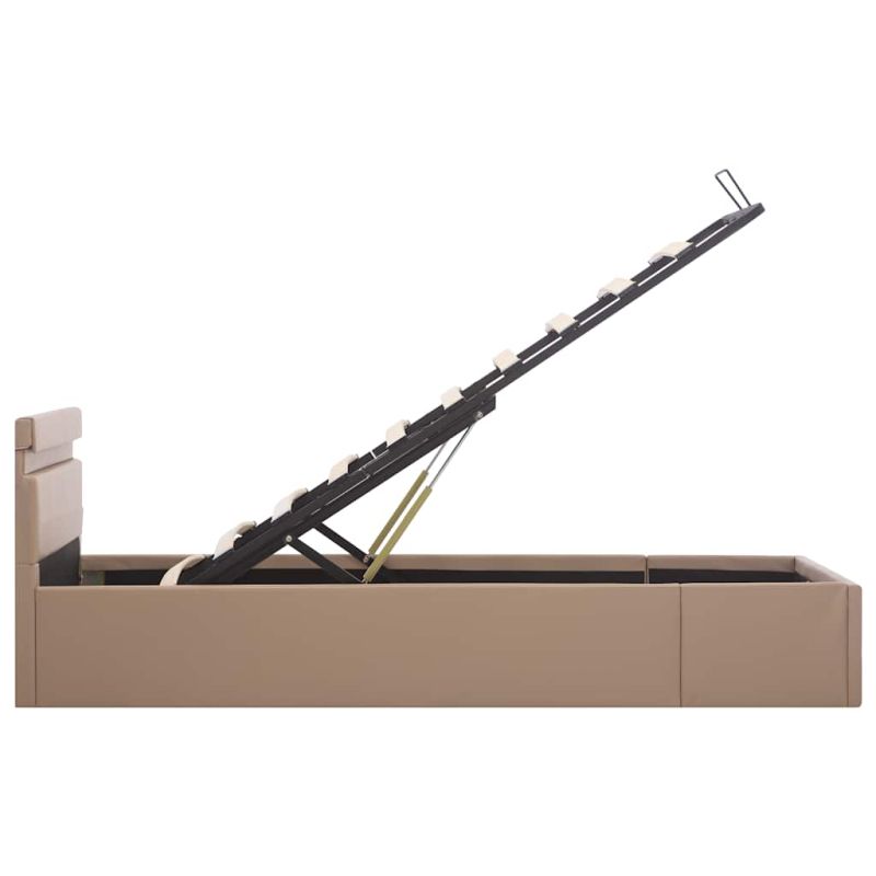 Легло с повдигащ механизъм и LED капучино еко кожа 100x200 cм