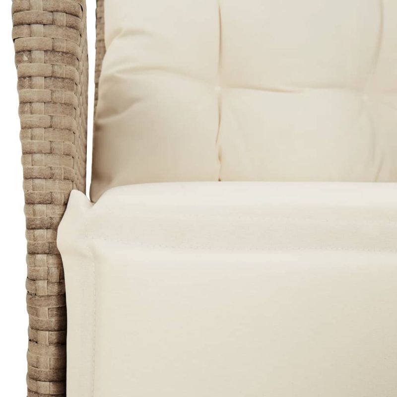 Този градински трапезен комплект е чудесен избор за вечеря на открито или просто за почивка в градината, задния двор или във вътрешния двор. Издръжлив материал: PE ратан, известен също като полиратан, е здрав синтетичен материал с малко необходима поддръжка, който прилича на естествен ратан. Той е лек, лесен за почистване и често се използва за външни мебели поради своята издръжливост и устойчивост на атмосферни влияния.Регулируема облегалка: Този градински стол има дръжка. Можете да регулирате облегалката във всяка позиция чрез издърпване на дръжката и бързо да я върнете в първоначалната ѝ позиция.Регулируем плот: Плотът може да се повдигне, за да направи масата по-висока, което трансформира външната маса от маса за кафе в маса за хранене. Идеална е за гости или за хранене навън.Калъф, който може да се сваля и може да се пере: Тези възглавници за седалки имат подвижни калъфи за лесно пране и поддръжка. Възглавниците за облегалките имат калъф отзад за лесно закрепване към облегалките.Удобна седалка: Тази мебел за открито, снабдена с плътно подплатени възглавници, предлага удобство при сядане. Добре е да се знае:За да сте сигурни, че вашите външни мебели ще останат красиви, ви препоръчваме да ги защитите с водоустойчиво покривало. Максимално 110 кг на седалка. Съобразете се с риска от открит огън и други източници на силна топлина в близост до продукта.
