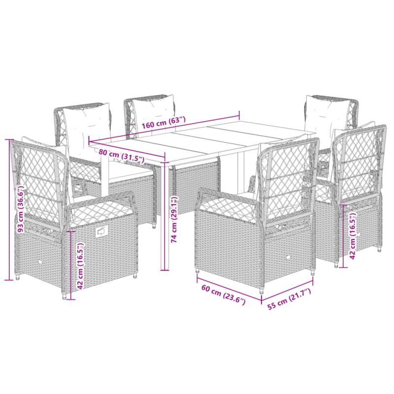 Този градински трапезен комплект е чудесен избор за вечеря на открито или просто за почивка в градината, задния двор или във вътрешния двор. Издръжлив материал: PE ратан, известен също като полиратан, е здрав синтетичен материал с малко необходима поддръжка, който прилича на естествен ратан. Той е лек, лесен за почистване и често се използва за външни мебели поради своята издръжливост и устойчивост на атмосферни влияния.Регулируема облегалка: Този градински стол има дръжка. Можете да регулирате облегалката във всяка позиция чрез издърпване на дръжката и бързо да я върнете в първоначалната ѝ позиция.Удобна седалка: Тази мебел за открито, снабдена с плътно подплатени възглавници, предлага удобство при сядане.Калъф, който може да се сваля и може да се пере: Възглавницата на седалката разполага с калъф, който може да се сваля за лесно пране и поддръжка.Стъклен плот: Плотът на външната маса е изработен от здраво и издръжливо закалено стъкло, което улеснява почистването с влажна кърпа и добавя нотка елегантност към вашето външно пространство. Добре е да се знае:За да сте сигурни, че вашите външни мебели ще останат красиви, ви препоръчваме да ги защитите с водоустойчиво покривало.