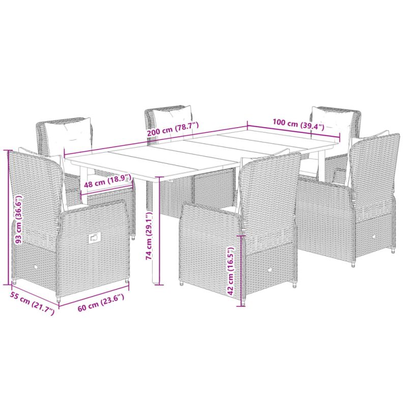 Градински трапезен комплект възглавници 7 части кафяв полиратан