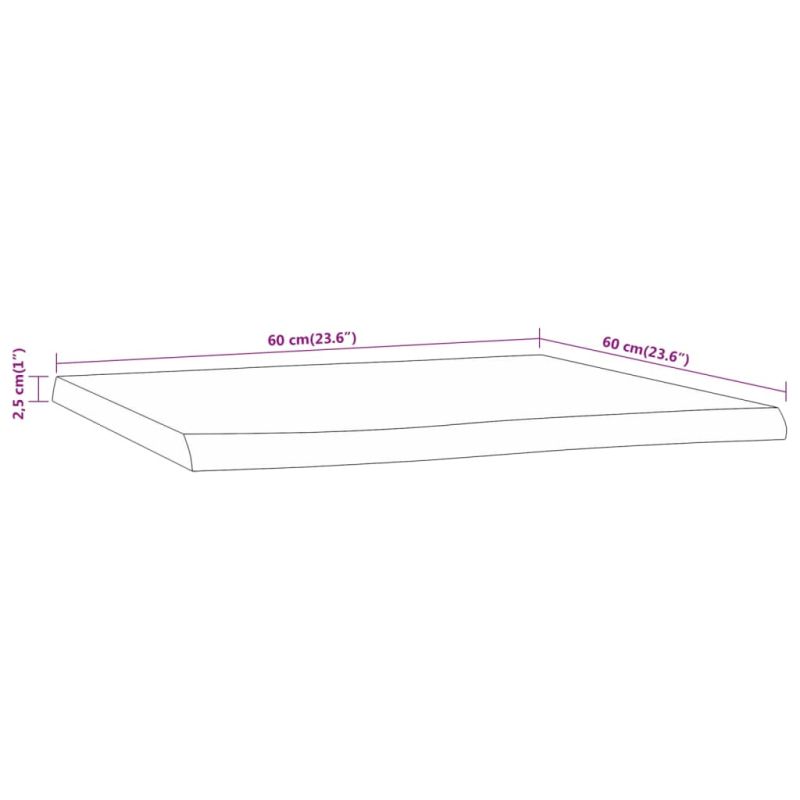 Плот за маса, 60x60x2,5 см, квадратен, акация масив, жив ръб