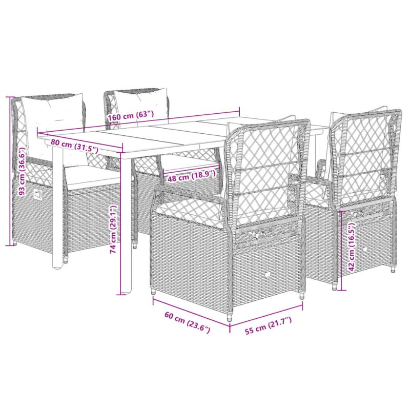 Градински трапезен комплект възглавници 5 части черен полиратан