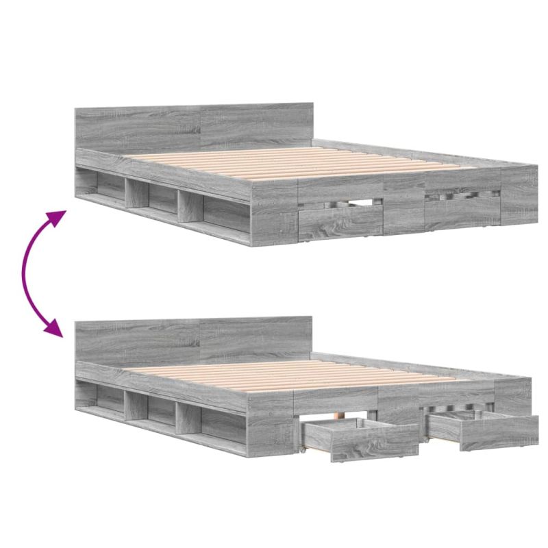 Рамка за легло с чекмеджета, сив сонома, 160x200 см