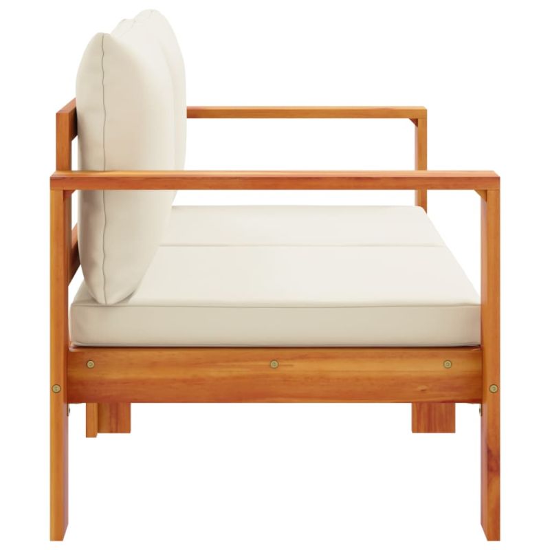 Отпуснете се и се насладете на живота на открито в този удобен 2-местен дървен градински диван! Масивна акациева дървесина: Масивното акациево дърво е красив естествен материал. Акациевото дърво е тропическа твърда дървесина, която е плътна, здрава и издръжлива.Удобна седалка: Тази мебел за открито, снабдена с плътно подплатени възглавници, предлага удобство при сядане.Калъф, който може да се сваля и пере: Възглавницата на седалката и на гърба имат подвижни калъфи за лесно пране и поддръжка.Модулен дизайн: Тези външни мебели имат модулен дизайн, което ги прави напълно гъвкави и лесни за преместване, така че можете да създадете персонализирана подредба на външни мебели. Добре е да се знае:За да сте сигурни, че вашите външни мебели ще останат красиви, ви препоръчваме да ги защитите с водоустойчиво покривало.Калъфките за възглавници могат да се перат на ръка, а не в пералня. Максимално 110 кг на седалка.