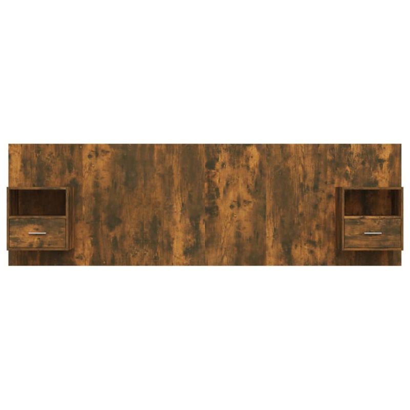 Горна табла за легло с шкафчета, опушен дъб, инженерно дърво