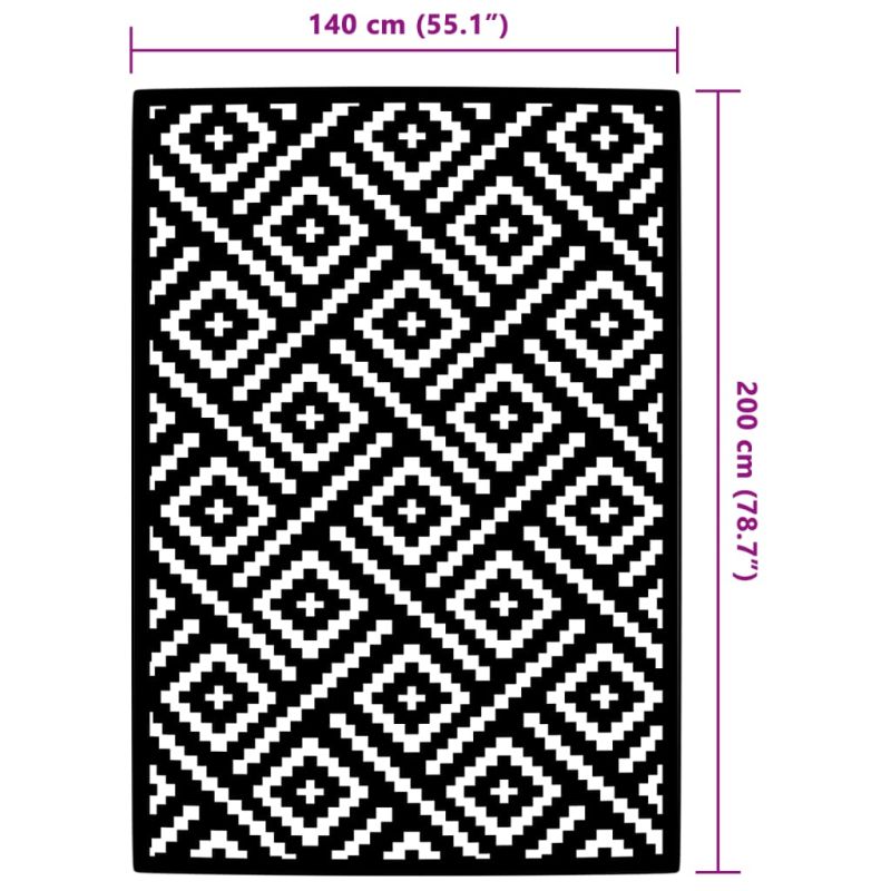 Килим за открито, ARAKIL Бяло и черно, 140x200 см, PP