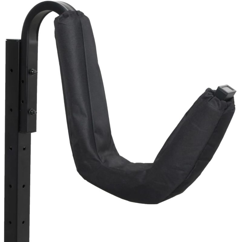 Свободностоящият багажник за каяк осигурява сигурно и надеждно съхранение на 2 отделни каяка. Издръжлив материал: Стелажът за каяк е изработен от здрав стоманен материал с прахово боядисана повърхност, което го прави устойчив на корозия и ръжда и има издръжлива структура, подходяща както за вътрешна, така и за външна употреба.Свободностоящ дизайн: Държачите за съхранение на каяк могат да бъдат свободностоящи, за да спестят място, приложими не само за каяци, но и подходящи за SUP, канута, дъски за гребла и др.Защита: Рамената са обвити с мека подложка, за да предпазят вашите каяци от драскотини, надрасквания и стърготини от боя.Регулиране на височината: Свободностоящата стойка за каяк има 2 рафта и всеки отвор за регулиране е на разстояние 10 см, така че можете лесно да го регулирате според вашите нужди.