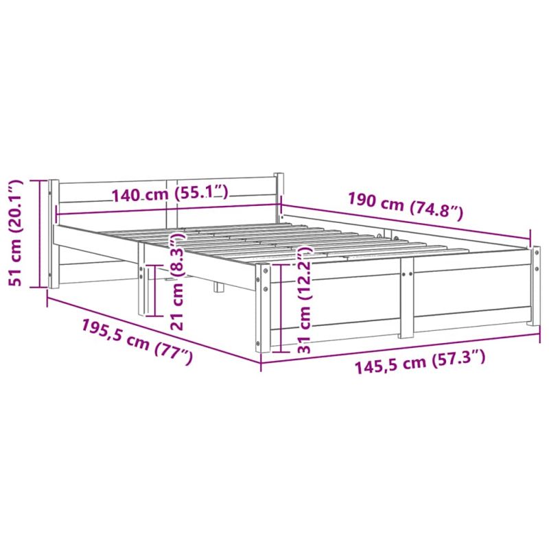 Модернизирайте вашата спалня с тази дървена рамка за легло! Тя ще се превърне в практично и декоративно допълнение към вашия интериор. Първокласна масивна дървесина: Масивната борова дървесина е красив естествен материал. Боровата дървесина има прави шарки, а възлите придават на материала характерния му рустик вид.Стабилна рамка за легло: Дървената рамка осигурява здравина и стабилност. Ламелите от шперплат осигуряват добро разпределение на теглото, като гарантират, че матракът остава на място при всяко завъртане на тялото ви по време на сън.Удобна табла за глава: Класическата табла ви позволява да си починете удобно, докато четете или гледате филм. Забележка:Доставката включва само рамка за легло. Матракът не е включен. Можете да проверите в нашия магазин за подходящи матраци.Тази рамка за легло е подходяща за матрак с размери 140 x 190 см.