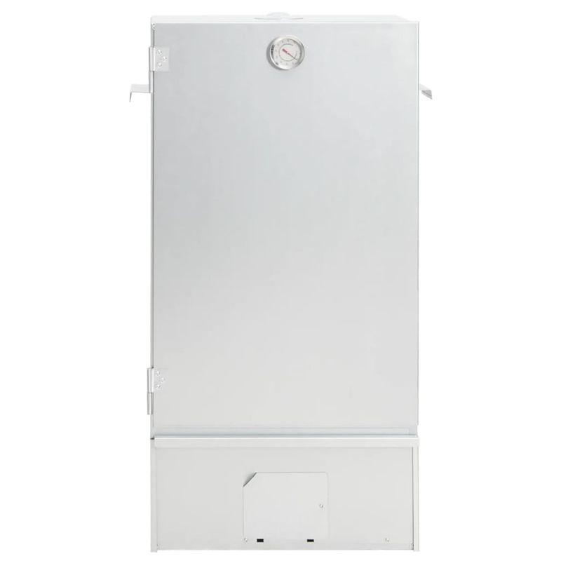Използвайте тази многофункционална фурна опушвач с дървесни стърготини и генератор за студено пушене, за да приготвите угощение и да се насладите на уютно време на открито със семейството си! Издръжлив материал: Стоманата е изключително твърд и здрав материал. Тя предлага здравина и стабилност. Поцинковането осигурява по-добра защита срещу ръжда и е полезно за продукти, които ще се използват на открито.Достатъчно пространство за опушване: Външният опушвач осигурява много място за опушване на вашето месо, риба, колбаси и т.н. Включените S-образни куки и решетки правят вашето барбекю по-удобно.Индикативна функция: Димогенераторът е снабден с термометър за осигуряване на най-доброто изпичане.Генератор за студено пушене: Просто напълнете с дървени стърготини и запалете с чаена свещ, докато дървените стърготини започнат да променят цвета си. Отстранете малката лампа и поставете генератора за пушене в шкафа за студено опушване. Компактната мрежа с правоъгълна форма позволява димните стружки да горят равномерно и бавно до 20 часа. Внимание:Не използвайте барбекюто в затворено и/или обитаемо пространство, напр къщи, палатки, каравани, кемпери, лодки. Опасност от фатален изход от отравяне с въглероден окис.